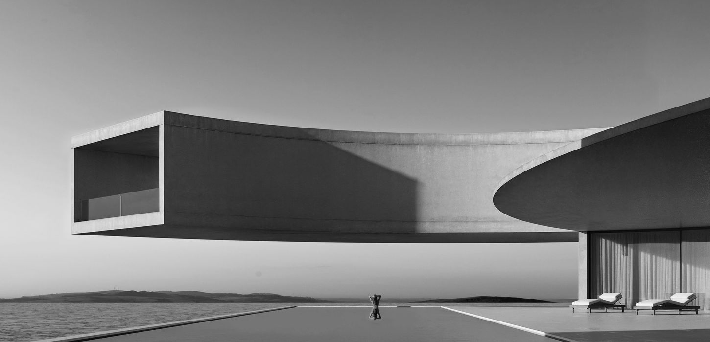 La zona giorno e la zona notte al piano superiore poggiano su un parallelepipedo semi-incassato nel terreno che ospita la zona dei servizi e degli accessori, come la sala cinema, una sala musica, la cucina industriale e uno showroom oltre a una cantina e depositi. l'appartamento della servitù; un garage su misura di otto posti si affaccia sul panorama mozzafiato del Lago di Garda attraverso un'ampia vetrata.